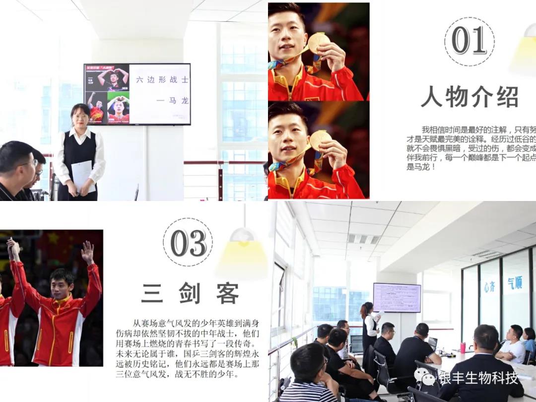 營銷服務中心周伽伊經理帶來的分享課程《馬龍-六邊形戰士》,講述了馬龍在乓壇的職業成名歷程,也給我們分享了中國乒乓球的輝煌歷史,中國乒壇從最初的“兩王一馬”到現在的乒壇“三劍客”,中國乒乓球一直在國際體壇上名列前茅,離不開中國運動員的拼搏奮斗和砥礪前行。配合周伽伊經理激昂的演講,把這次創建和打造學習型團隊系列活動推向高潮。