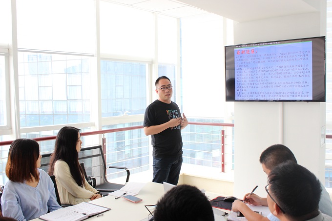 王新忠經理以《中美貿易摩擦的回顧與展望》為課題展開培訓。首先從歷史的角度分析了中美貿易的發展歷程及特點;又分別從政治、經濟、社會、文化及意識形態就貿易戰展開細致分析,逐條解讀中美之間矛盾產生的根本原因,涉及范圍廣泛,內涵相當豐富;最后大致預測了中美經貿關系的未來發展。為了加深員工對課題的理解,王經理舉例論證了貿易戰不僅僅是貿易層面的問題,還涉及到政治、相互認知、戰略互信等方面,這為公司貿易專員提供了獨特的分析問題的方式。