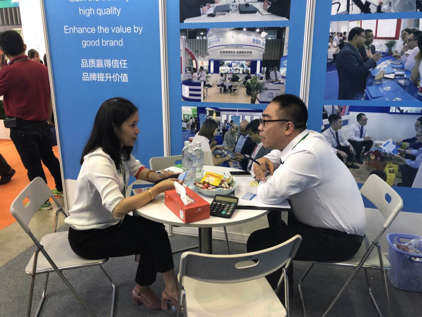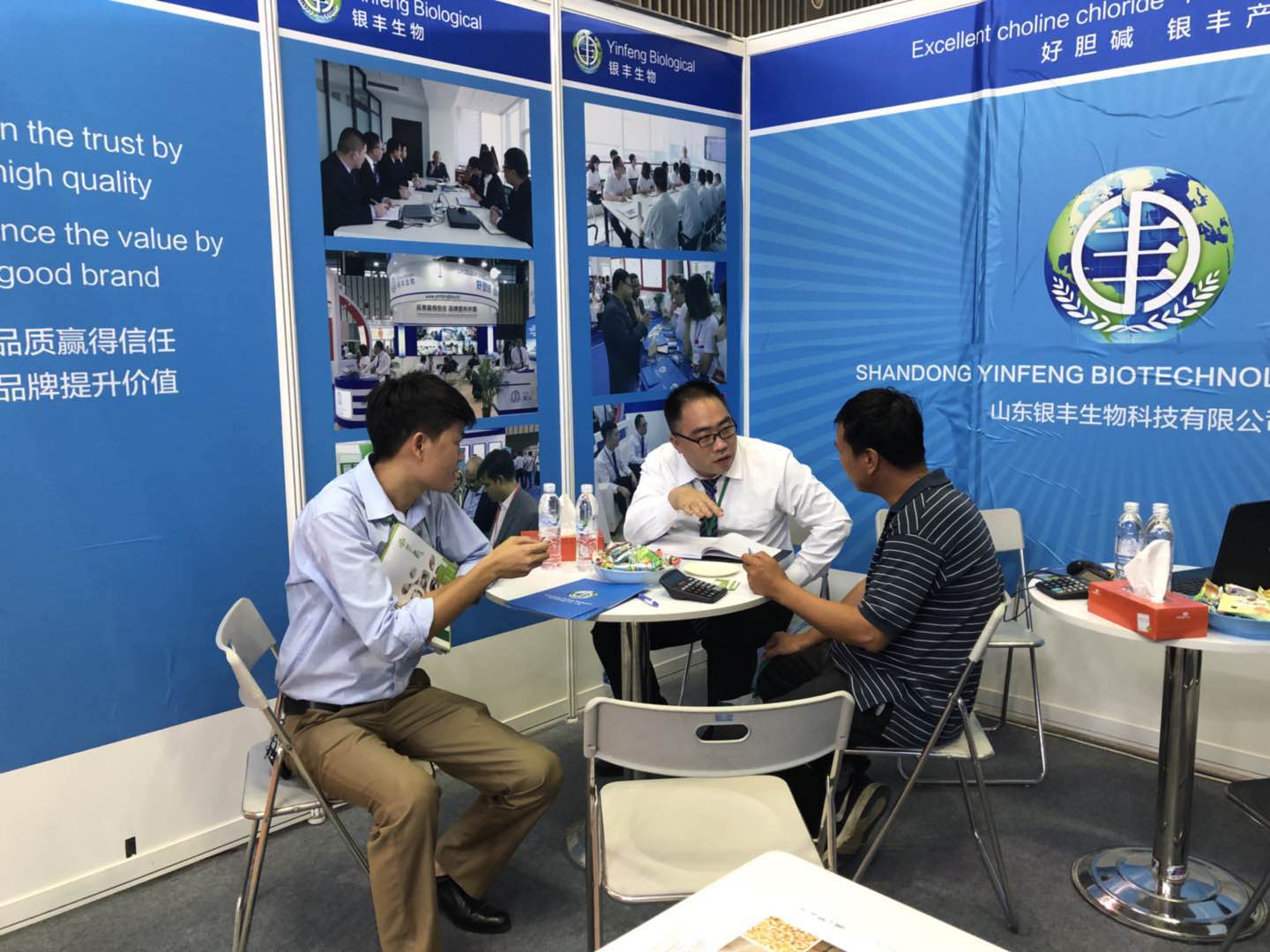 在展會上,有之前通過郵件聯系的老客戶前來展位進行面對面的溝通,更多的還是對氯化膽堿有需求并且對山東銀豐認可的新客戶來到展位洽談、咨詢,釋疑。面對客戶所提出的合作細節和問題,銀豐外貿營銷團隊的王新忠和鄒玉嬌兩位經理以豐富的專業知識一一給客戶從質量、品牌、價格、服務等公司戰略性的發展方面進行了解答釋疑,得到了洽談客戶的廣泛認同。通過此次展會,已經有20多位國外客商達成合作意向。