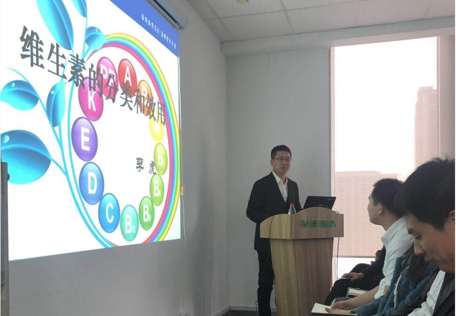 李虎經理就《維生素的分類和效用》一題與大家分享。李經理從維生素的發展歷程、分類、性狀、生產和發展等七個方面來講解了維生素在飼料添加劑行業中的廣泛作用,并結合當今市場的情況,對維生素的發展方向進行了詳細的分析與大膽的預測,課件圖文并茂,闡述清晰條理,獲得了維高團隊的稱贊和掌聲。