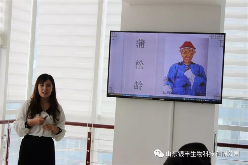 說起山東,全國人民基本都會說出有關于山東的代名詞,沒錯,山東不僅是圣人孔孟的故鄉,是儒家思想的發源地,山東地區的豪杰偉人數不勝數,同樣,山東的文學家對中國文學的發展也起到了功不可沒的推進作用。陳昱蓉經理本期所介紹的蒲松齡即是山東文學家代表人物之一,他所創作的《聊齋志異》以花妖狐魅的幻想故事,反映現實生活,將中國古代文言短篇小說發展到了一個新高度。陳昱蓉經理以其溫柔細膩的言語,精致典雅的課件,為我們生動講述了蒲松齡的人物生平及其一生的跌宕境遇,通過她介紹的《聊齋志異》的創作背景、趣聞妙事以及其在蒲松齡故居游玩時的所見所聞,讓大家對蒲松齡和他的聊齋有了新的認識,也感嘆能與如此偉人生活在同一片故土上而感到自豪與驕傲。