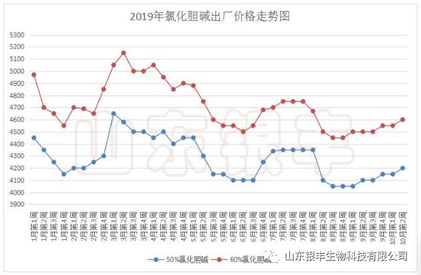 在山東銀豐上一期(10月17日)的氯化膽堿資訊文章中,作者對10月下旬氯化膽堿的行情走勢研判分析為:上游原料環氧乙烷隨著10月下旬檢修裝置陸續恢復生產及相關產品的弱勢影響,不排除有走弱的可能;上游原料三甲胺隨著10月下旬魯西化工的開產,供應寬泛度將逐步增加,在整體下游需求沒有明顯好轉的情況下,三甲胺上漲乏力,看空氛圍漸起,不排除有回調的可能;中期來看(指11月上旬)伴隨著上游原料工廠檢修陸續結束,供應寬泛度增加,氯化膽堿走勢預期震蕩或偏弱運行。近二十天來環氧乙烷、三甲胺及氯化膽堿的市場表現都完全印證了文章分析的觀點:10月23日三甲胺市場價格大幅下挫800元/噸;10月31日國內環氧乙烷廠家將環氧乙烷價格下調300-400元/噸,氯化膽堿進入本年度的最后一次谷底震蕩期。關注點來了---后市氯化膽堿將以怎樣的價格態勢來運行?本次谷底振蕩期的上漲拐點在何時會出現?