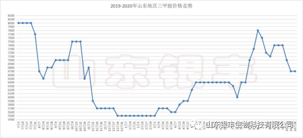 三甲胺方面,由于三甲胺關(guān)聯(lián)產(chǎn)品DMF銷量受阻,下游跟進(jìn)力度減弱,導(dǎo)致價(jià)格一降再降,加之冬季環(huán)保審核力度的加大,對(duì)廠家生產(chǎn)造成了一定的影響,多方面原因?qū)е赂鲝S家生產(chǎn)負(fù)荷相應(yīng)降低,連帶三甲胺出貨量也相對(duì)減少,庫(kù)存量處于低位,廠家限量保價(jià)意愿強(qiáng)烈。目前山東地區(qū)三甲胺市場(chǎng)主流出廠成交價(jià)格參考6700-7200元/噸,自11月底至今,三甲胺市場(chǎng)價(jià)格接連上漲300元每噸,但在三甲胺產(chǎn)量低位,下游膽堿廠家需求等方面的共同促進(jìn)下,預(yù)計(jì)三甲胺價(jià)格仍有上升空間。