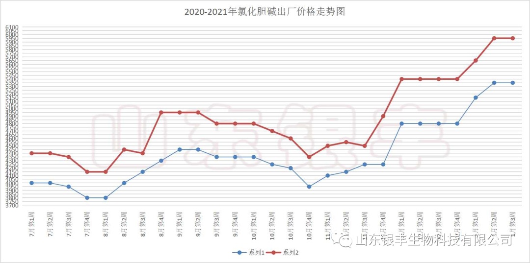 在上一期(2020年12月29日)的氯化膽堿市場資訊文章中,筆者分析認為:氯化膽堿價格在春節之前的這段時間預計保持堅挺的態勢運行,易漲難跌,不排除在突發因素的刺激下,出現大幅上漲的可能。自文章推送之后,氯化膽堿在多方面因素的共同作用下,價格連續上漲,目前仍呈現堅挺態勢。距離2021年春節來臨已經不到一個月的時間,全國各地已經全面進入春節備貨階段,本期資訊將分析此階段的價格走勢情況。