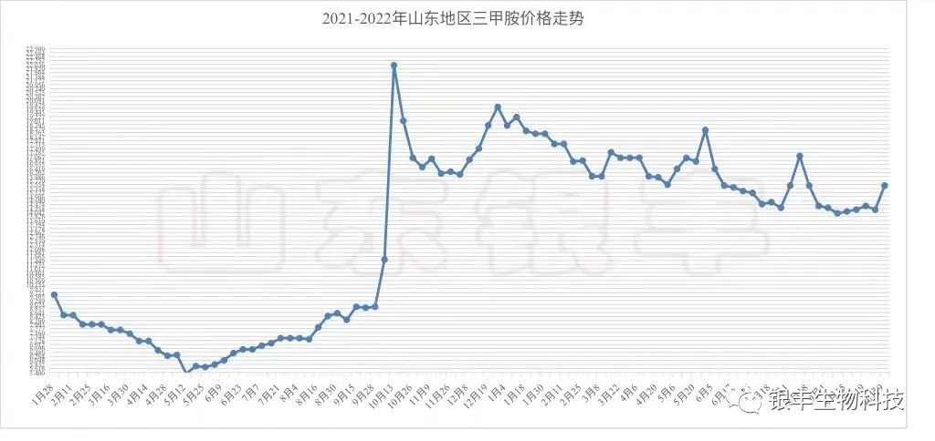 在上期(9月20日總第73期)的銀豐資訊中,銀豐資訊觀點認為:隨著環氧乙烷供應量逐漸增加和氯化膽堿產能的逐步釋放,會有效增加三甲胺的提貨量,三甲胺價格梯次上行上調到15000元以上將成為大概率選項;氯化膽堿在成本上漲的支撐下,保持偏強運行,預計市場表現為多頻次窄幅上行。